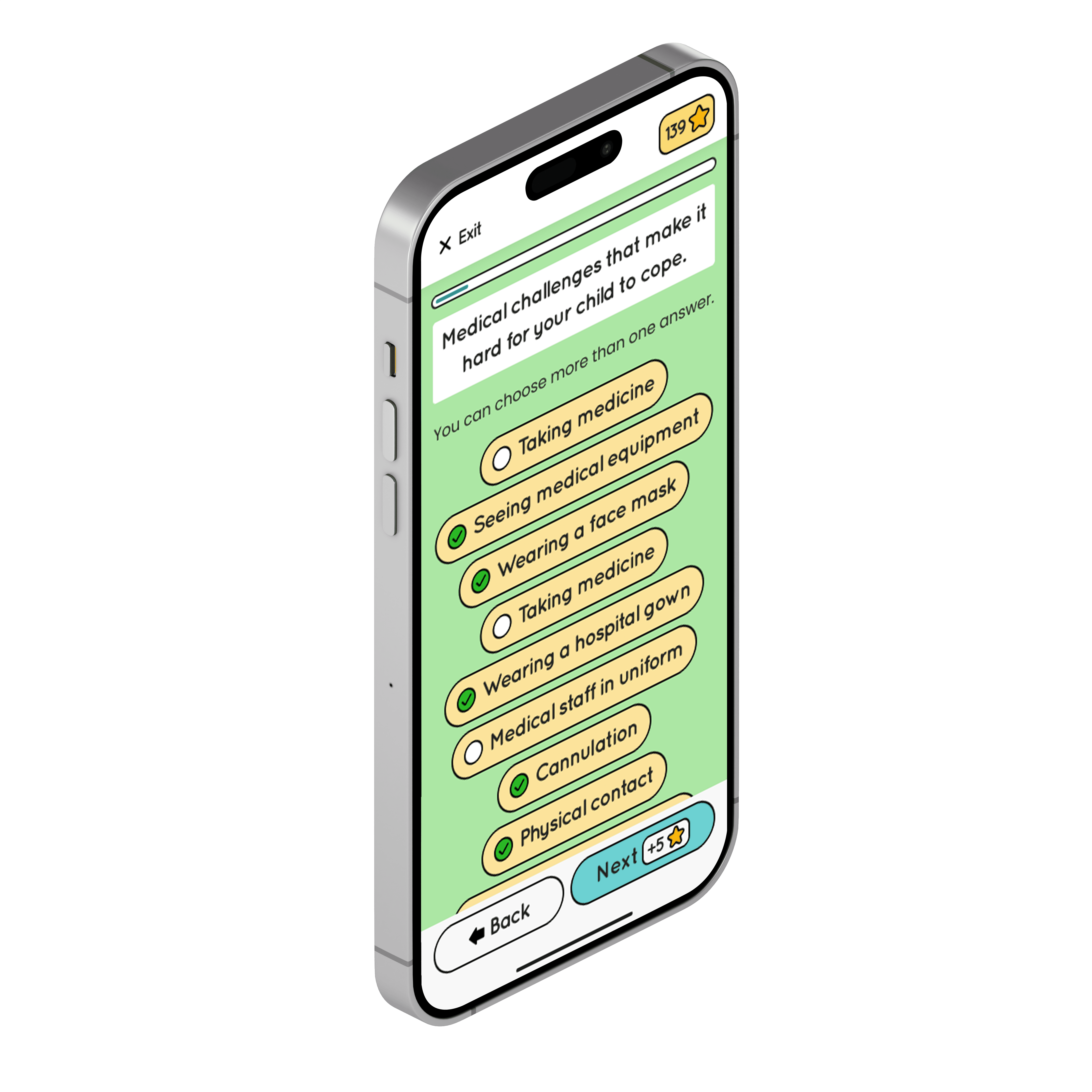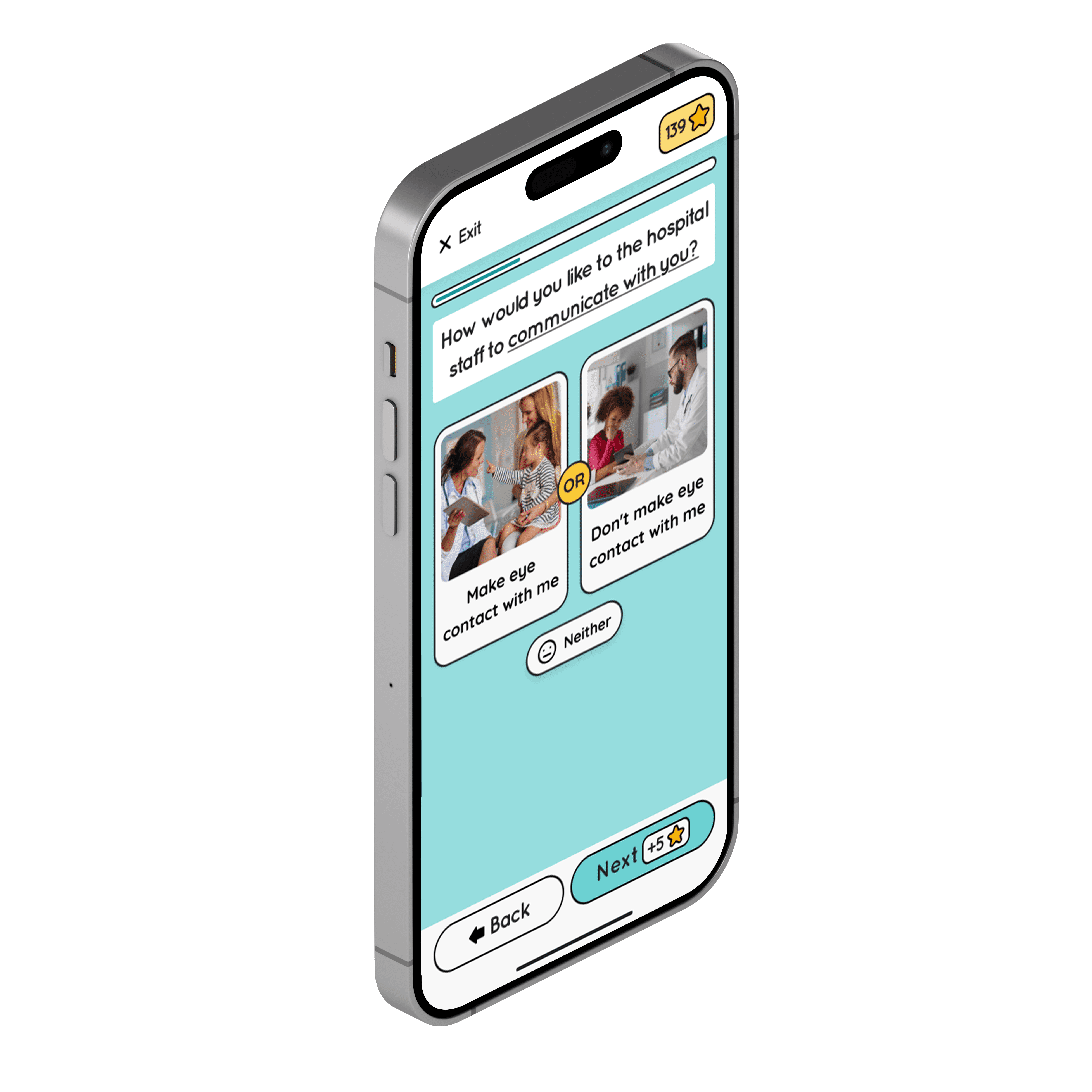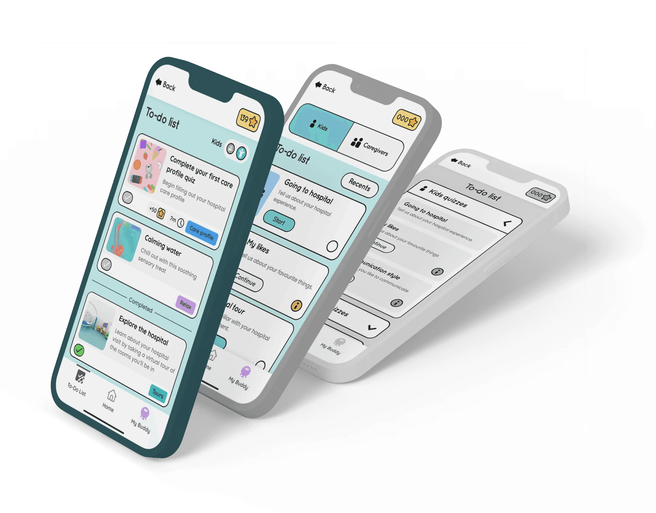 The problem this module addressed was that children and their families (especially those who are neurodivergent) experience higher levels of anxiety during hospital visits and healthcare interactions. The feature aimed to gather a collection of datapoints through a series of gamified quizzes, which could then be translated into a one-sheet of actionable adjustments passed on to attending medical staff ahead of a procedure, helping to reduce the chances of traumatic intervention.