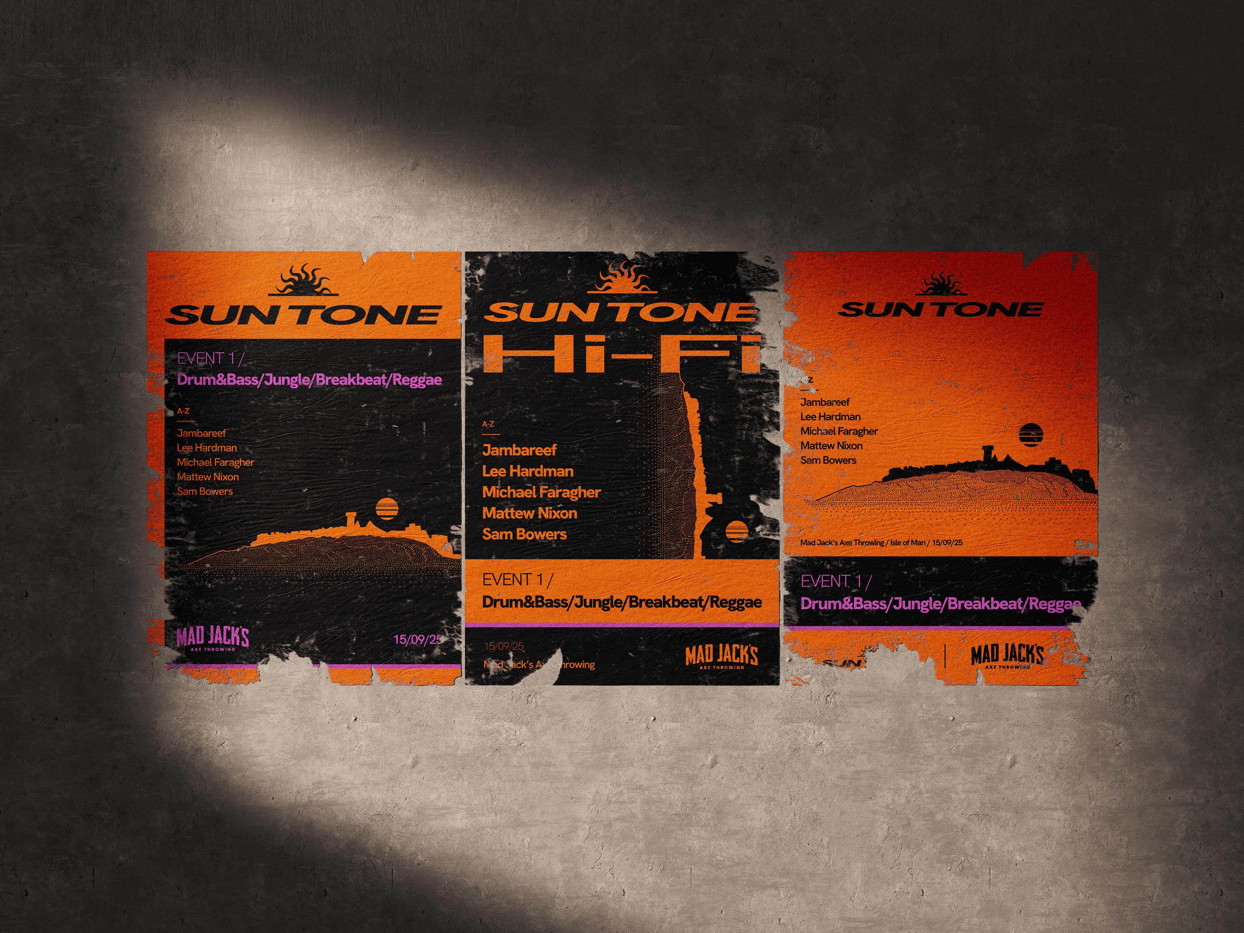 The goal was to pair the representation of my home through the graphic styles of electronic music and sound system culture. My hometown is known as sunset city and I wanted to harness that euphoric feeling of the golden hour sunlight to represent the feel good music that Sun Tone embodies.